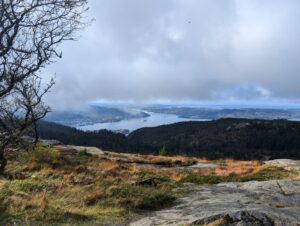 We will meet in front of Rema 1000 Haukelandsveien (easily accessible by taking line 2 of the bybane to the stop Haukeland sjukehus, or by walking from the center of town) and will walk to the dam at Svartediket. From there, we will along the shore of the lake and will then take a trail leading up to Rundemannen, from where we will proceed down to Fløyen and back to the city center. The plan is to walk down, but it is possible to take the funicular down to the city center from the top of Fløyen.