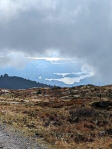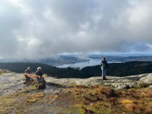 This is a rather nice walk close to the city center that provides a slightly different approach to Rundemannen and Fløyen and, most importantly, does not require taking any busses or other public transit (which is somewhat less frequent on Sundays anyway).